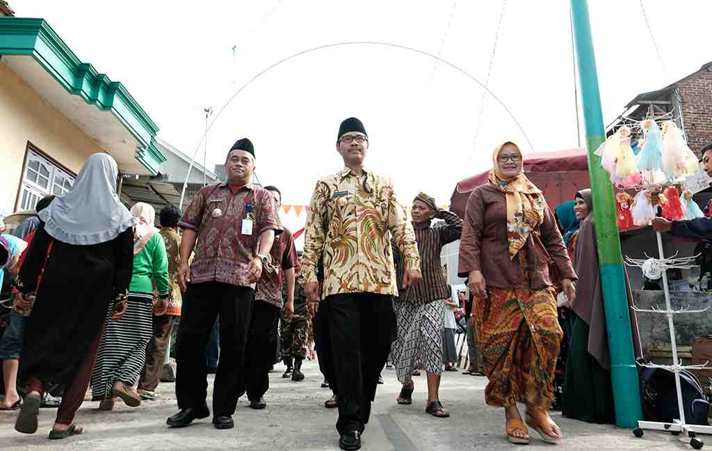 Bupati Temanggung HM Al Hadziq (tengah) mengikuti kirab khoul Paku Aji di Desa Dangkel, Kecamatan Parakan, didampingi Kepala Desa Dangkel Lestari (kanan) dan Camat Toto Budi wyanto (kiri), Kamis (13/6/2019). Khoul Simbah Paku Aji diperingati setiap bulan syawal setiap tahunnya, dengan mengarak gunungan dari hasil bumi serta tumpeng perwakilan setiap Rt yang diarak keliling desa. MC Kab Temanggung/coeplistyo.