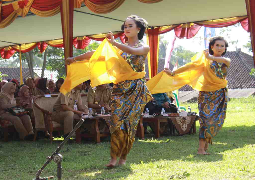 Dua siswi SMA Negeri 2 Temanggung menampilkan tarian Gambyong Parianom dalam Pencanangan Bulan Bakti Gotong Royong XVI dan Peringata..
