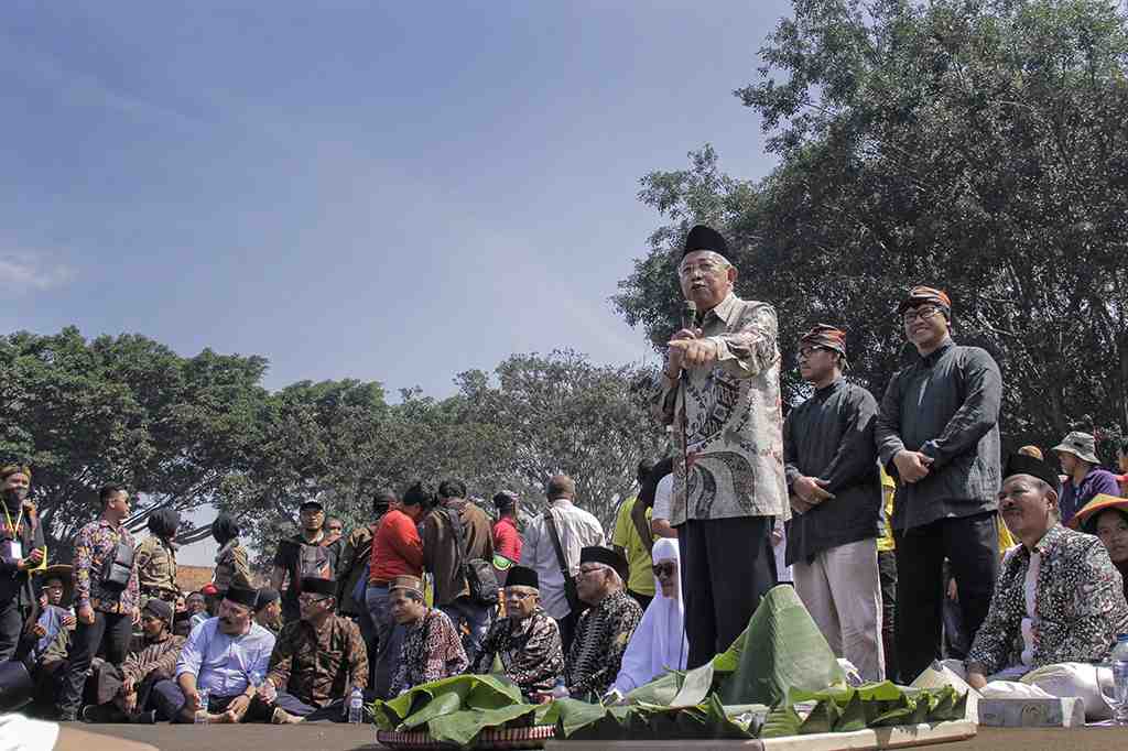 Pemuka Agama Kyai Hasyim Affandi memberikan nasehat kepada petani tembakau dalam Slametan Wiwit Mbako Merti Bumi Phala a..