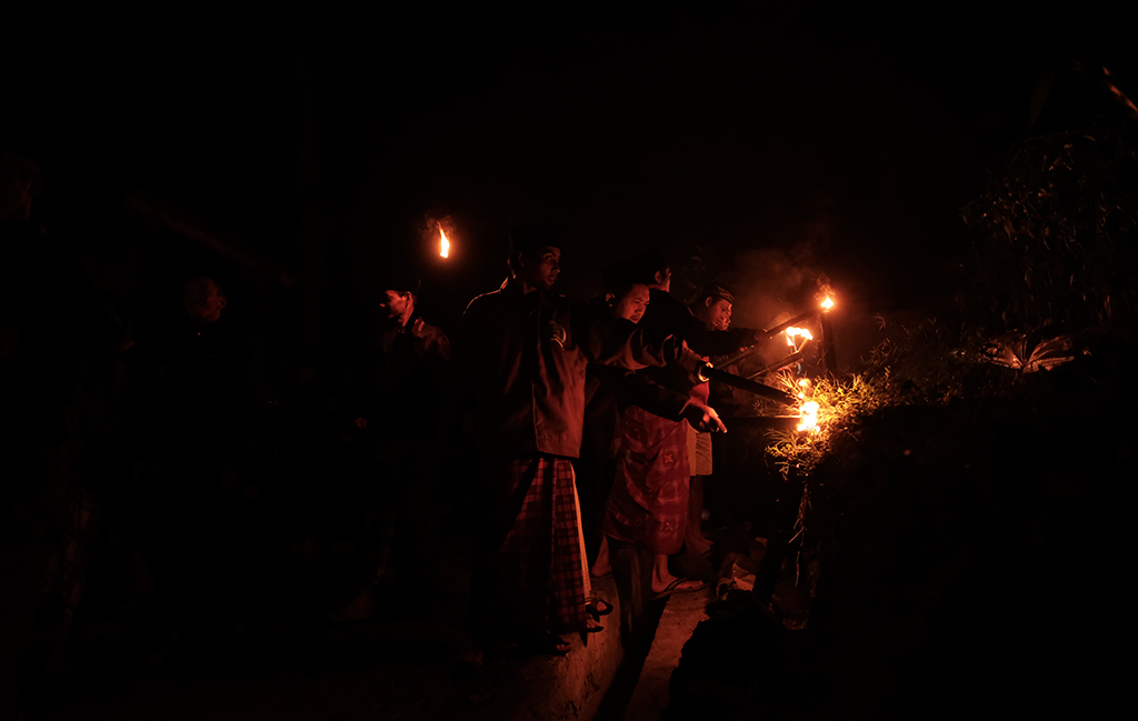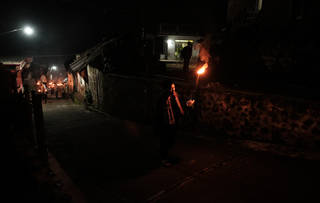Warga Desa Pacepit Pager Gunung, Kecamatan bulu Kabupaten Temanggung, membawa oncor atau obor menuju temp..
