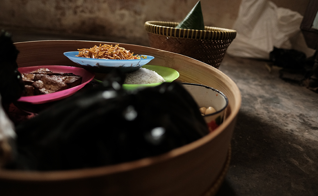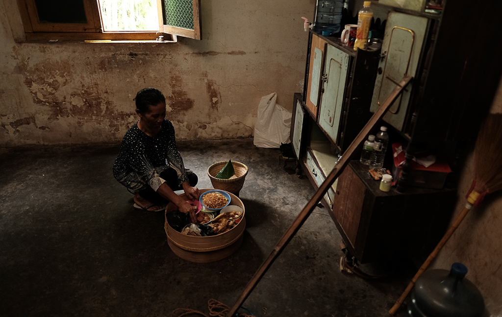 Maryati (65) warga Desa Pacepit, Kecamatan Bulu, Kabupaten Temanggung, mempersiapkan isi tenong (tempat d..