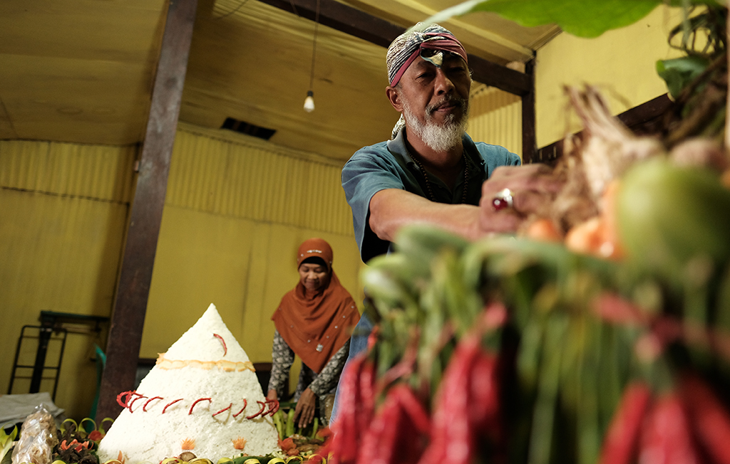 Sesepuh Desa Pacepit Pager Gunung, Kecamatan Bulu, Kabupaten Temanggung. menata hasil bumi yang disusun m..