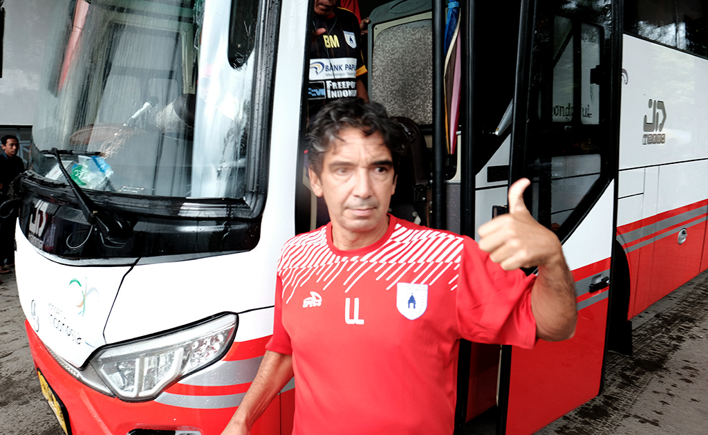 Luciano Leandro pelatih Persipura tiba di Stadion Bhumi Phala Temanggung, Senin (11/2/2019). Kedatangan K..