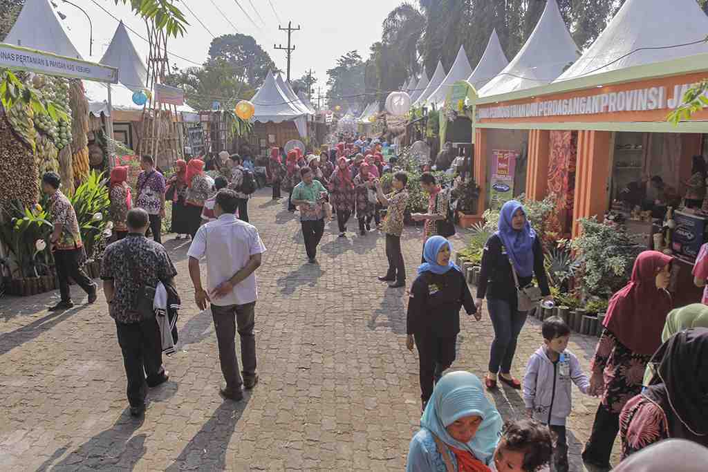 Pengunjung memadati area satnd Dinas Pertanian dan Perdagangan se-Jawa Tengah di arena Soropadan Agro Expo (SAE) 2019 di Soropadan, ..